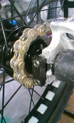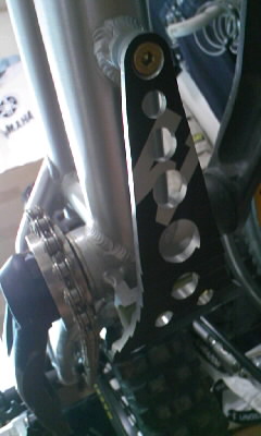 チェーン引きはスネイルカムではなくエンドの後ろから引っ張るタイプ。細かい調整がしやすくて良いです。しかし純正のボルトだと長いし頭が出っ張るのでぶつけると曲がっちゃいます。なのでイモネジに交換。見た目もスッキリ。最初からイモネジ装備のやつも売ってますけどね。